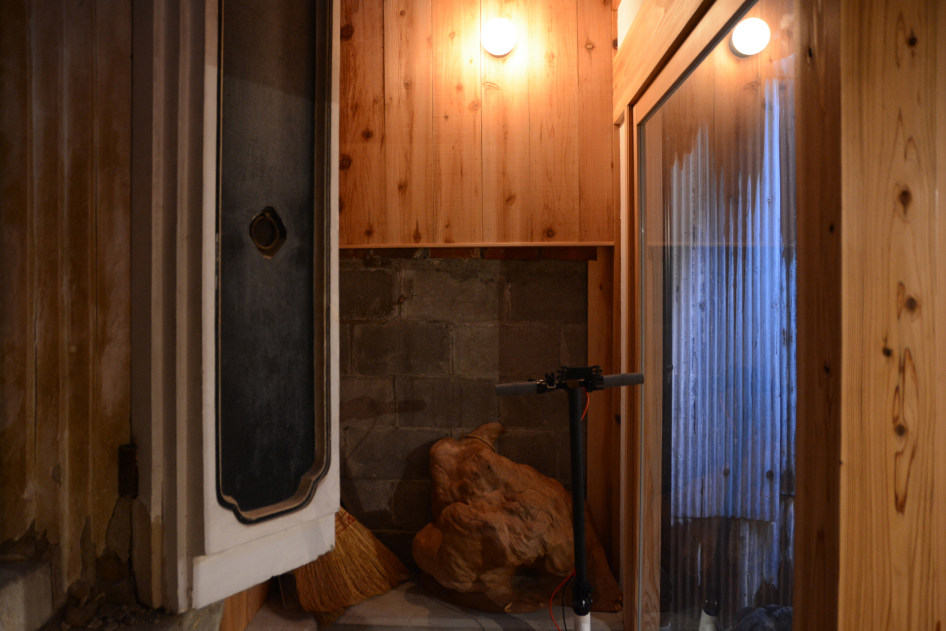 いよいよ、土蔵がある蔵前までやってきました。土蔵は2024年の地震でけっこう被害を受けてしまいましたが、それでも良い雰囲気は残されました。中庭の明かりと相まって、ここは新湊の町家ならではの魅力的な空気感が漂う場に。個人的には大好きです。キュンと来ます。ここを肴に晩酌もいけます。